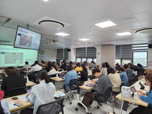 이번 보조공학기기 활용 역량 강화 연수는 유·초·중학교 특수교사 40여 명을 대상으로 보완대체의사소통(AAC)에 대한 이론적 내용뿐만 아니라 의사소통 보완 소프트웨어 실습도 함께 진행됐다.